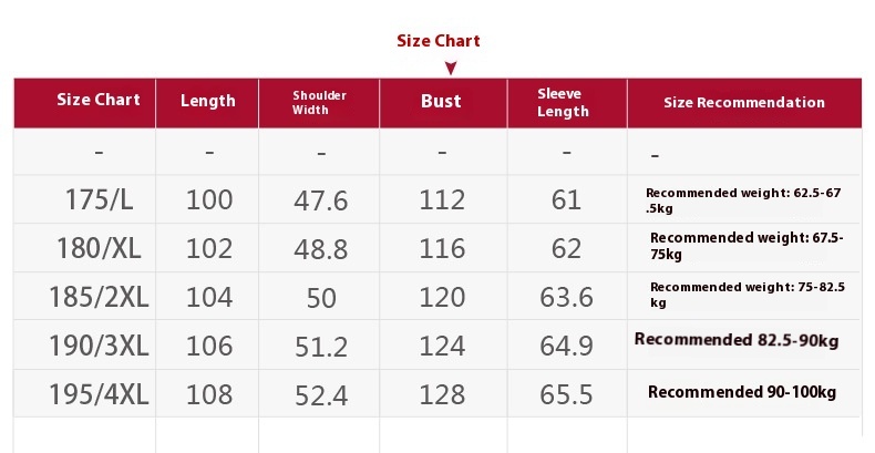 Size: L/175,XL/180,2XL/185,3XL/190,4XL/195