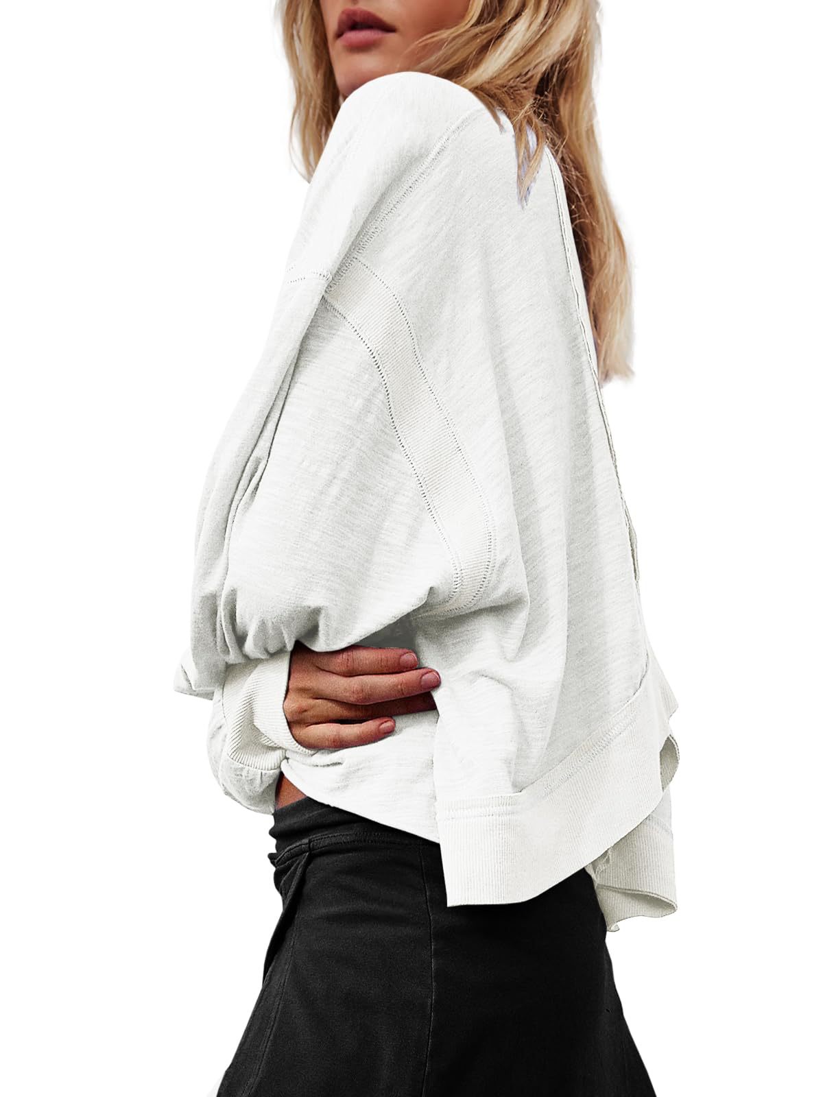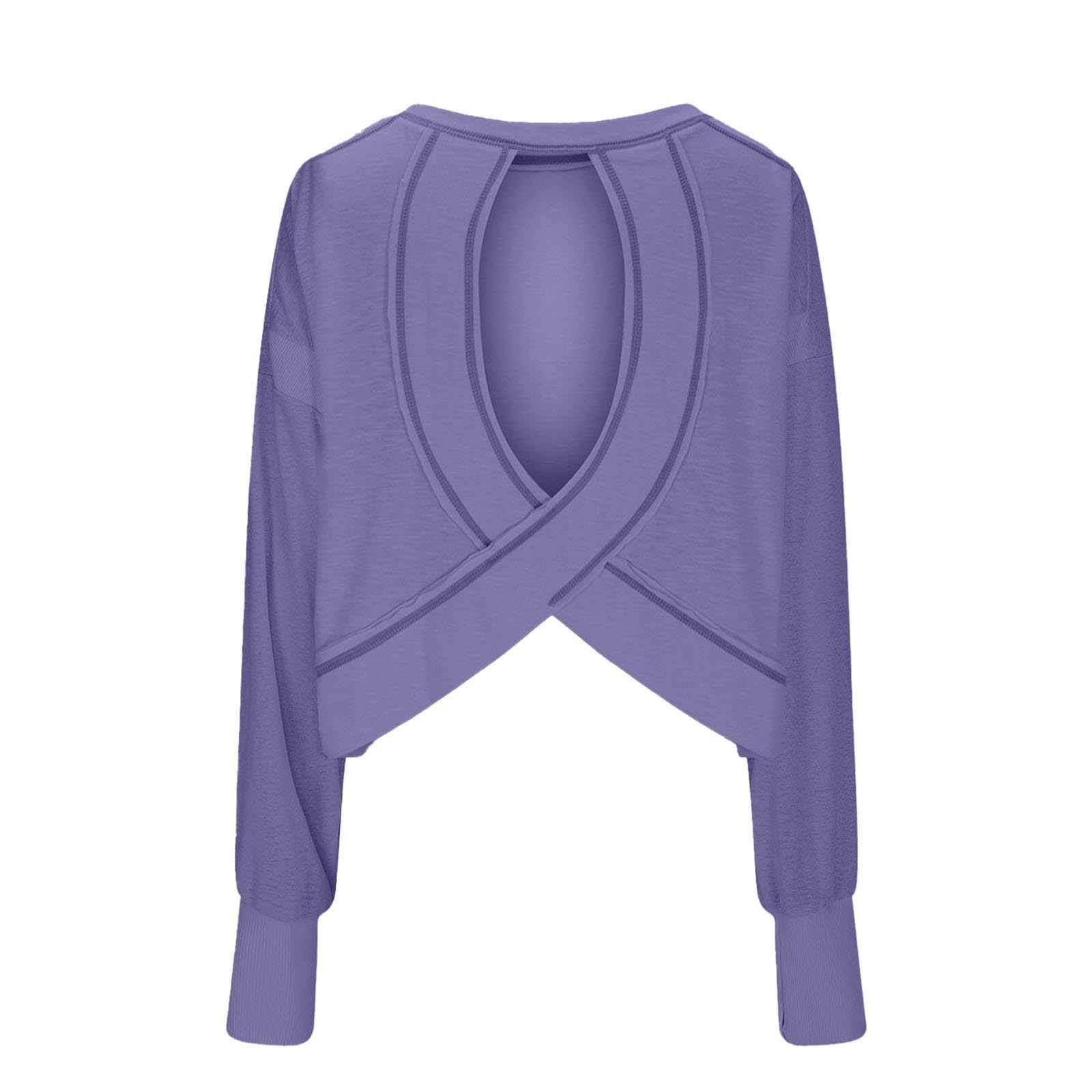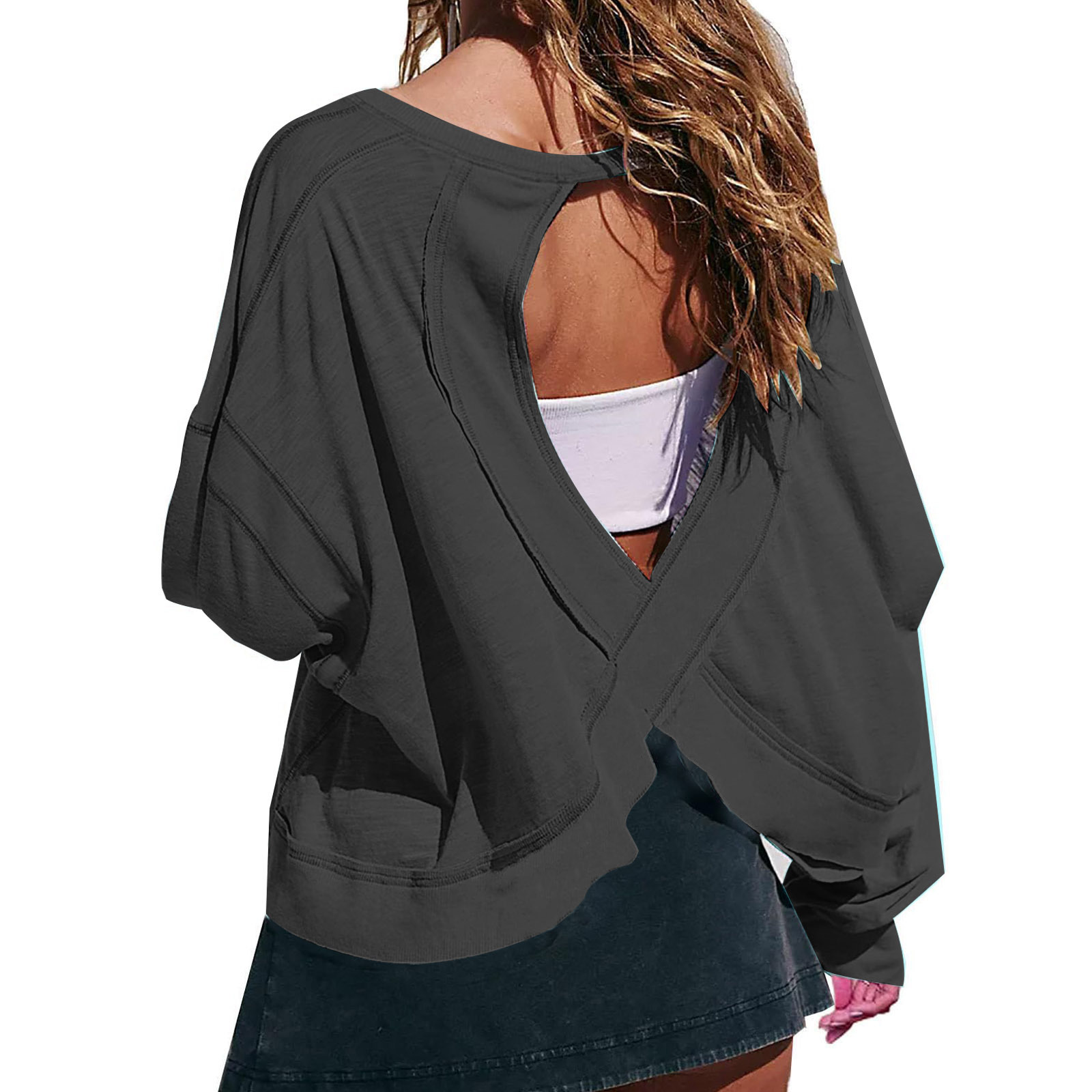 Women's Loose Long-sleeved Backless Top Hollow-out Short Round Neck T-shirt