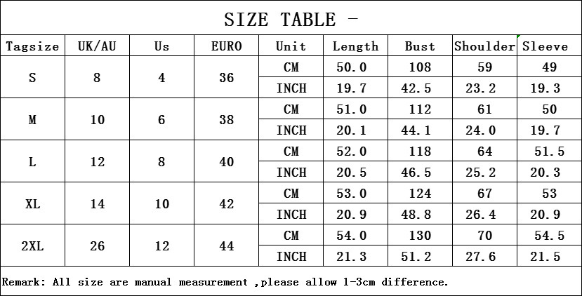 1. Asian sizes are 1 to 2 sizes smaller than European and American people. Choose the larger size if your size between two sizes. Please allow 2-3cm differences due to manual measurement. 2. Please check the size chart carefully before you buy the item, if you don't know how to choose size, please contact our customer service. 3.As you know, the different computers display colors differently, the color of the actual item may vary slightly from the following images.